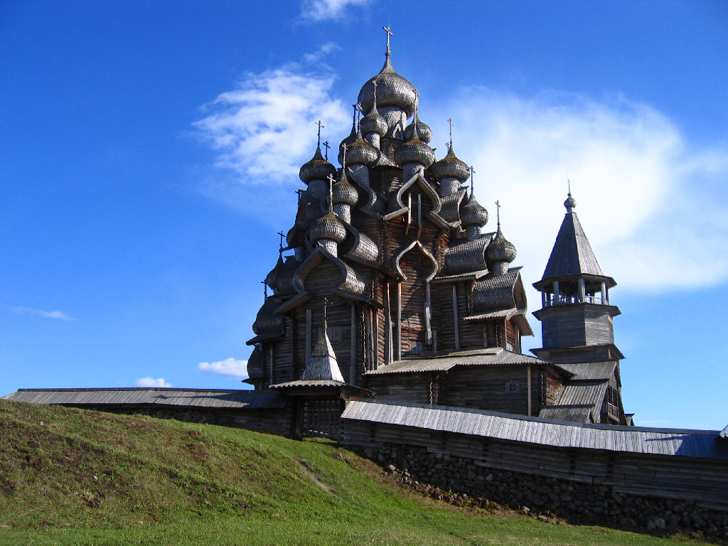 The Church of the Transfiguration in Kizhi, Russia is the most remarkable part of the pogost. It is not heated and is therefore called a summer church and does not hold winter services. Its altar was laid June 6, 1714, as inscribed on the cross located inside the church. This church was built on the site of the old one which was burnt by lightning. The builders names are unknown. A legend tells that the main builder used one axe for the whole construction, which he threw into the lake upon completion with the words "there was not and will be not another one to match it".